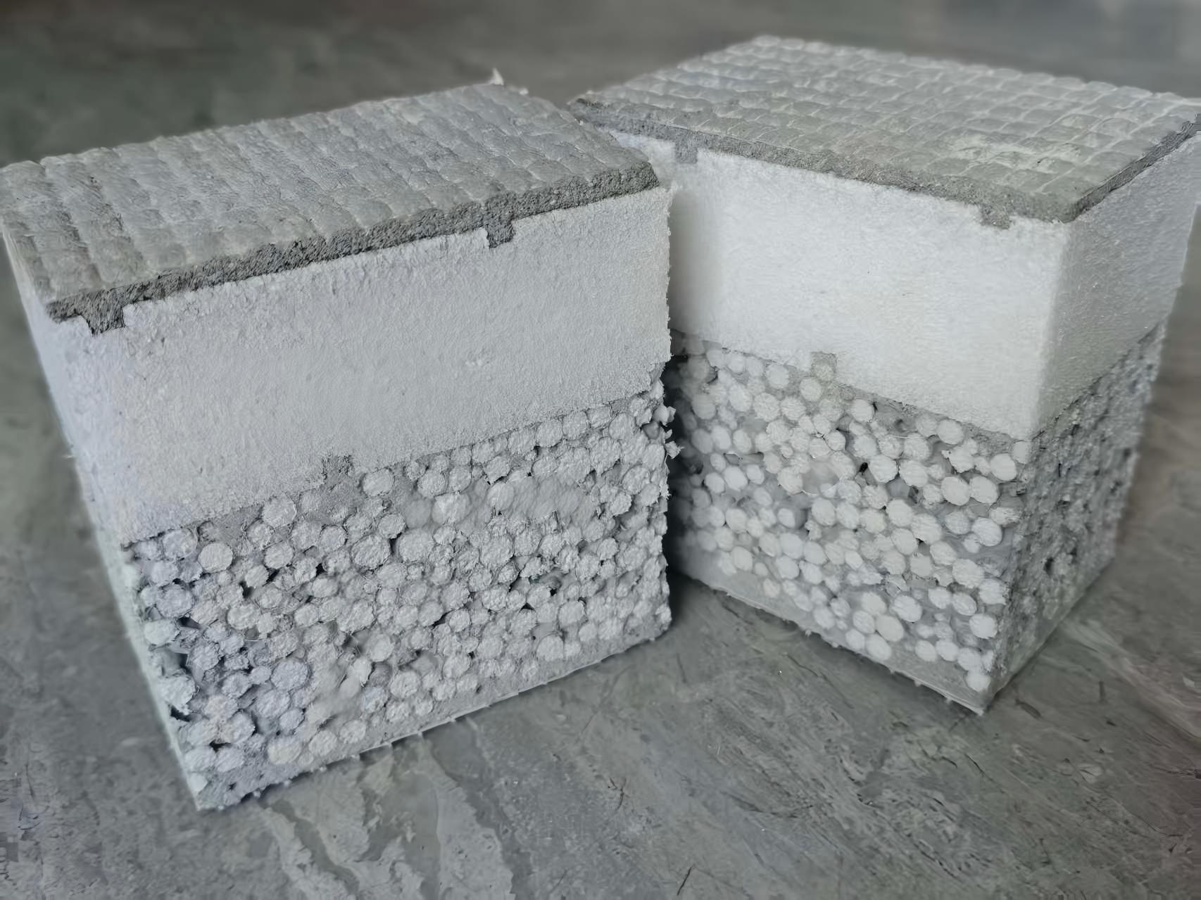保温芯板复合保温免拆模板中起保温、隔热作用的阻燃型石墨聚苯板、石墨挤塑板和不燃憎水型岩棉带芯板石墨聚苯板、石墨挤塑板在传统聚苯板或挤塑板中加入适量的石墨烯、红外吸收剂和反射剂,从而避免辐射带来的热流动,使其在隔热性能方面提高20%以上的保温板材。岩棉带芯板为了增加抗拉强度,在岩棉条中间加人无机矿物轻集料砂浆作为加强肋而与岩棉带共同形成的整板。
